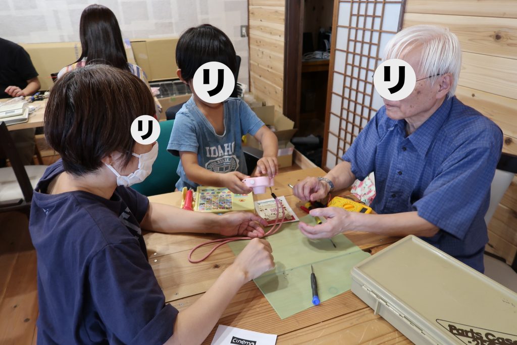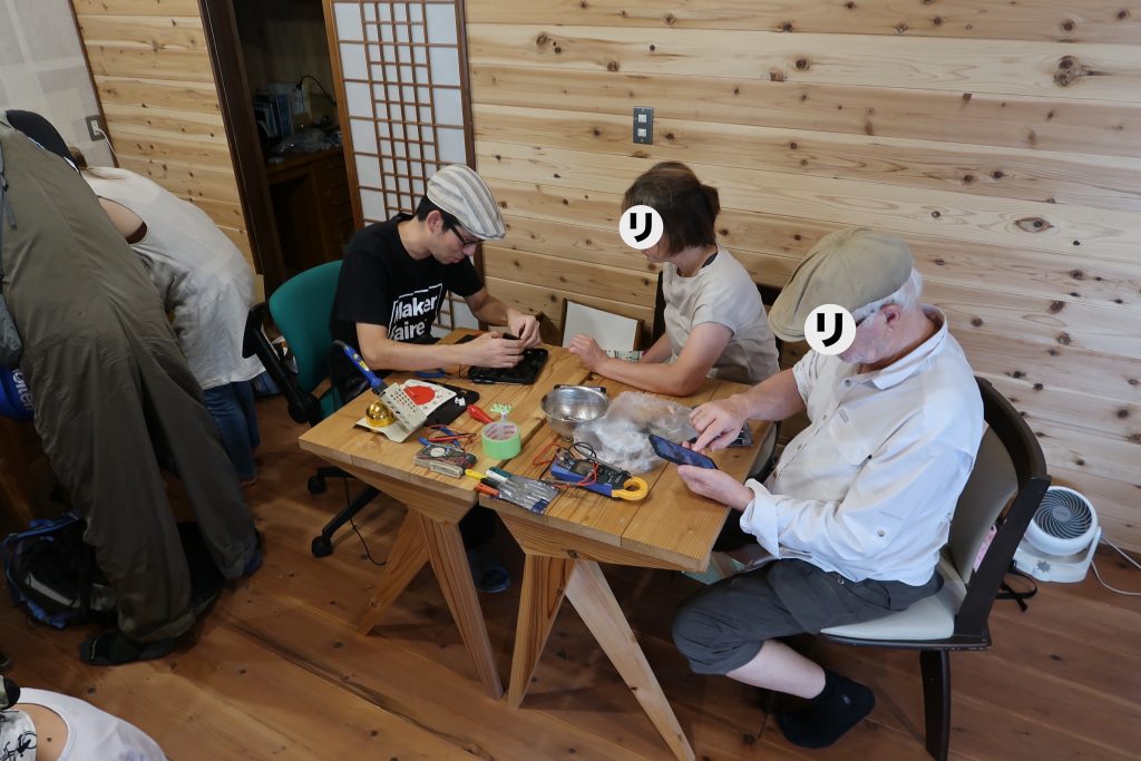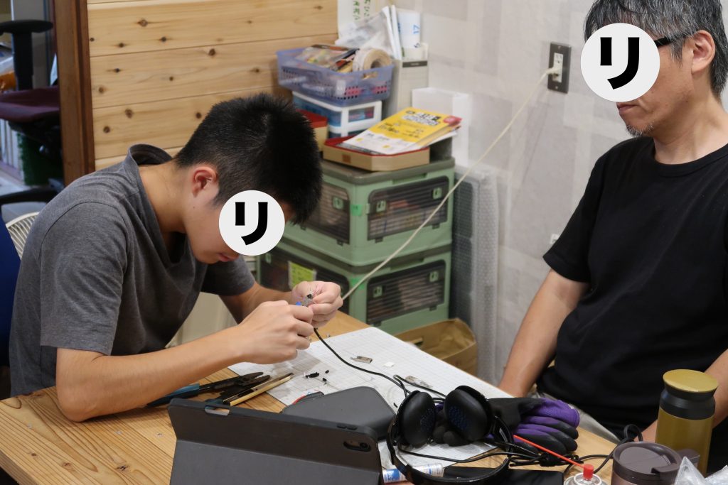 今回の修理人体制は、山見、鈴木、洋服のお直し+洋裁教室の渡邉知栄さん、豊中おもちゃ病院の茨木誠さん、そして、「技術の時間」の参加者から中学3年生も修理人として入ってもらいました。